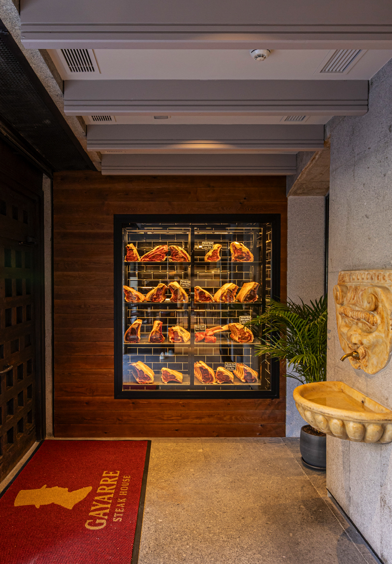 Steak house Premium con inspiración vintage. En un ambiente elegante y sofisticado centrado en carnes de máxima calidad, preparadas en parrilla de carbón, combinado con verduras al horno y a la brasa, pescados de anzuelo y arroces.